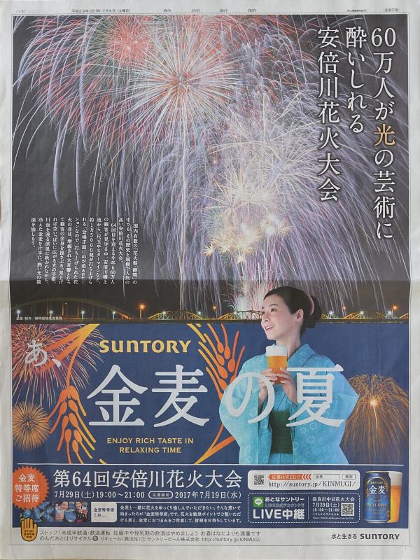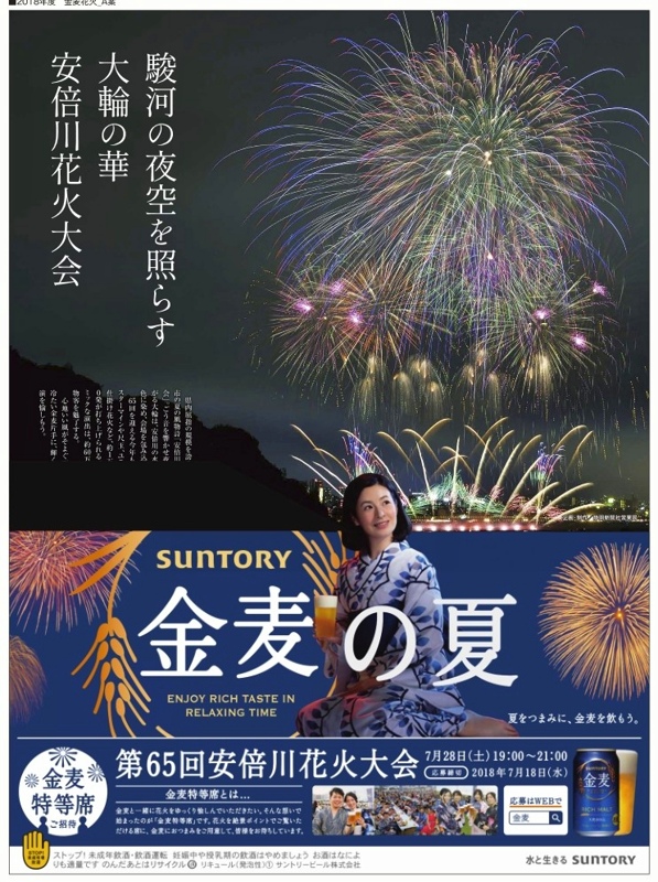 2018年度サントリー金麦の夏 安倍川花火大会企画広告写真採用して頂きました。